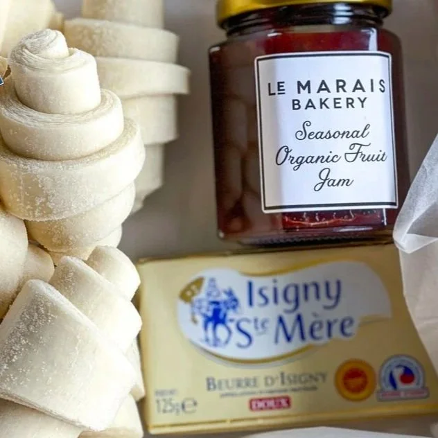 In our San Francisco bakery, a croissant takes 3 days from mixer to oven, made with long fermentation, natural levain, local butter, freshly ground flour, farm eggs, milk, water, and a little bit of salt and sugar. Every pastry we serve at Le Marais Bakery is made from scratch, small batch, by hand every day in our kitchen, fait maison, traditionnel, artisanal...
